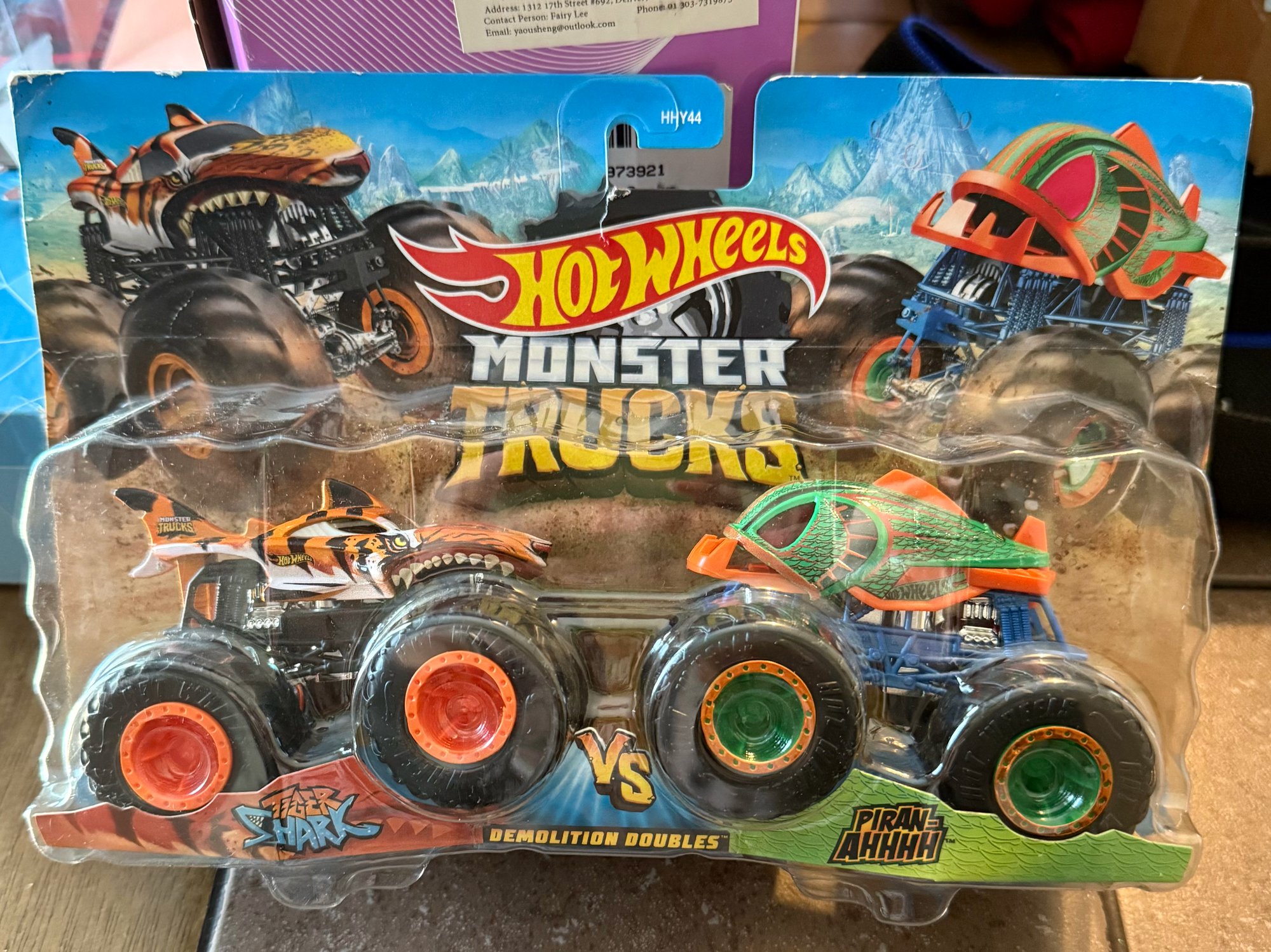 Hot Wheels Monster Trucks Tiger Shark vs Piran-Ahhhh Demolition Doubles Set